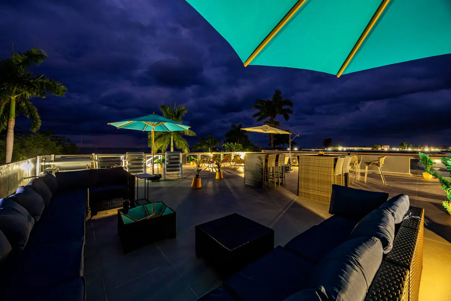 Elevate your next event at this exquisite beachfront rooftop sanctuary, offering sweeping ocean views that set the stage for truly memorable moments. Featuring panoramic ocean views, it creates a truly unforgettable backdrop. This spacious, tastefully designed lounge area is perfect for intimate gatherings, sunset cocktails, stylish private parties, or special celebrations under the stars — comfortable seating, ambient lighting. Whether you’re planning a private dinner, a birthday soirée, or simply want to unwind with friends and family, this scenic rooftop promises an elevated experience unlike any other.