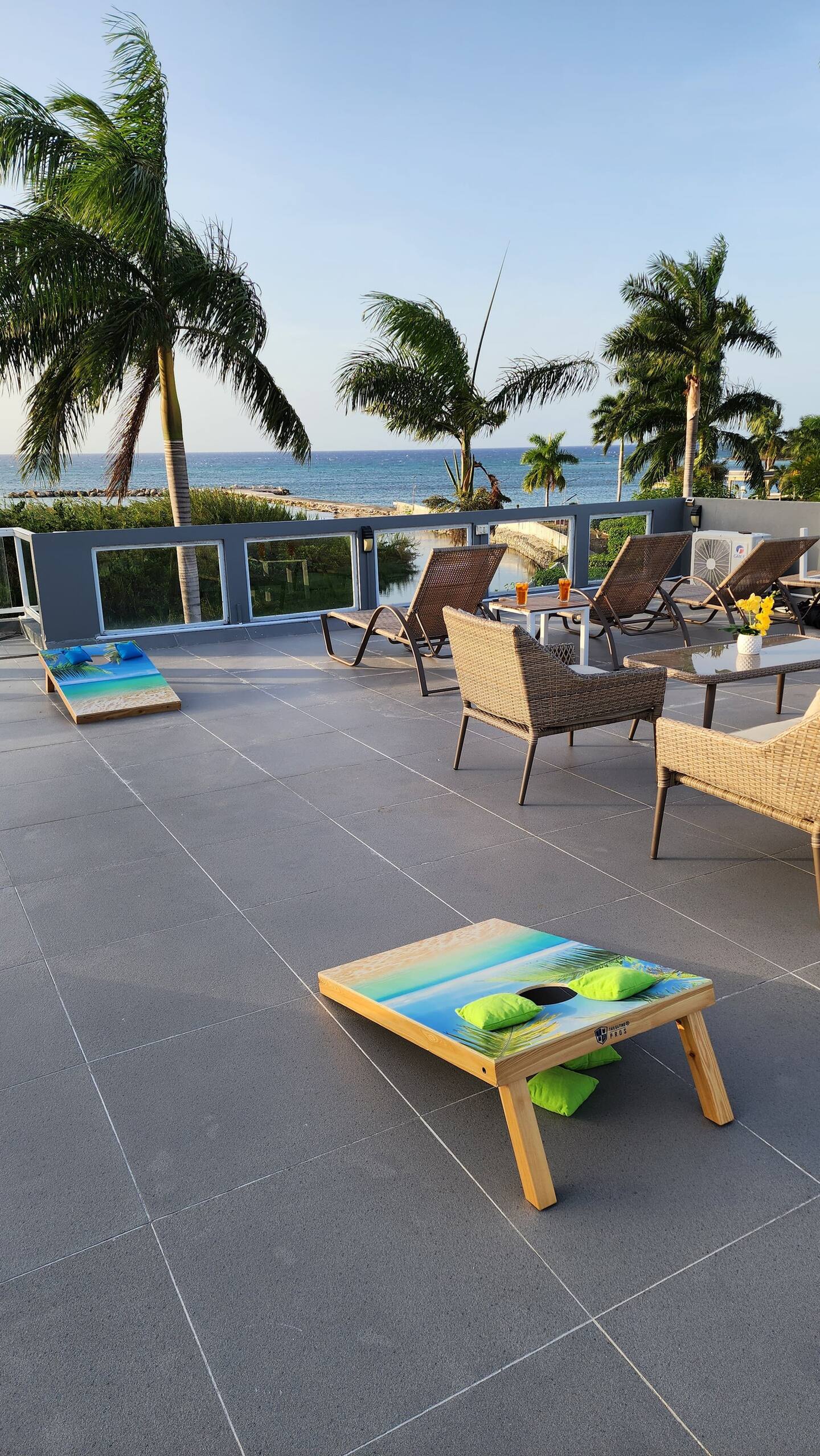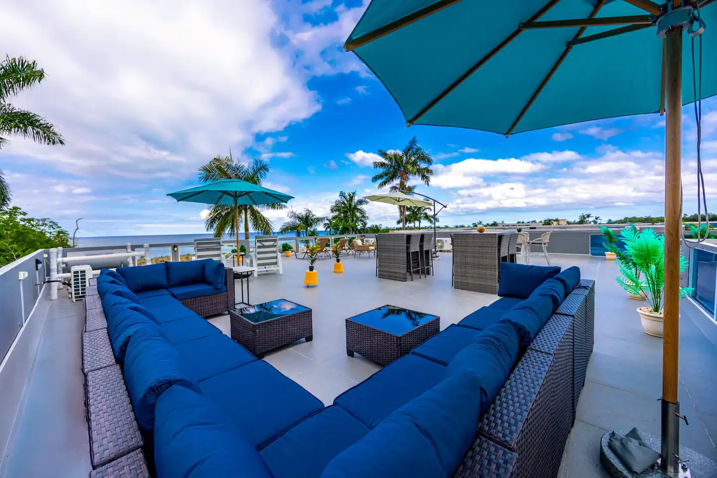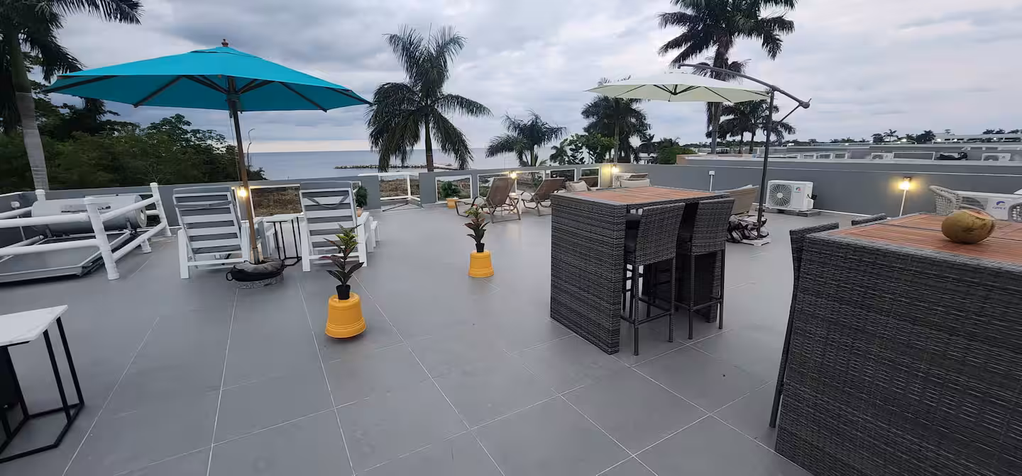 Our Breathtaking Rooftop Lounge is a scenic entertainment area with sweeping ocean views, ideal for relaxing or hosting unforgettable gatherings maximum 25.