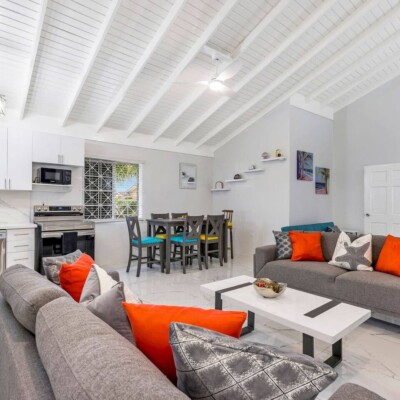 Experience this unique and tranquil getaway. Coastal Pleasures — Unit C sleeps 13 in a secure gated community at the Drax Hall Country Club. This 4-bed, 4-bath villa offers a full kitchen, living and dining areas, A/C, smart TVs, Wi-Fi, washer/dryer, and sleeper sofas. Enjoy the pool, gym, tennis, kids’ playground, private beach 10 mins away, and top Ocho Rios attractions nearby. Local airport transport is available at guests’ cost. $500 refundable security deposit due 3 days before arrival.