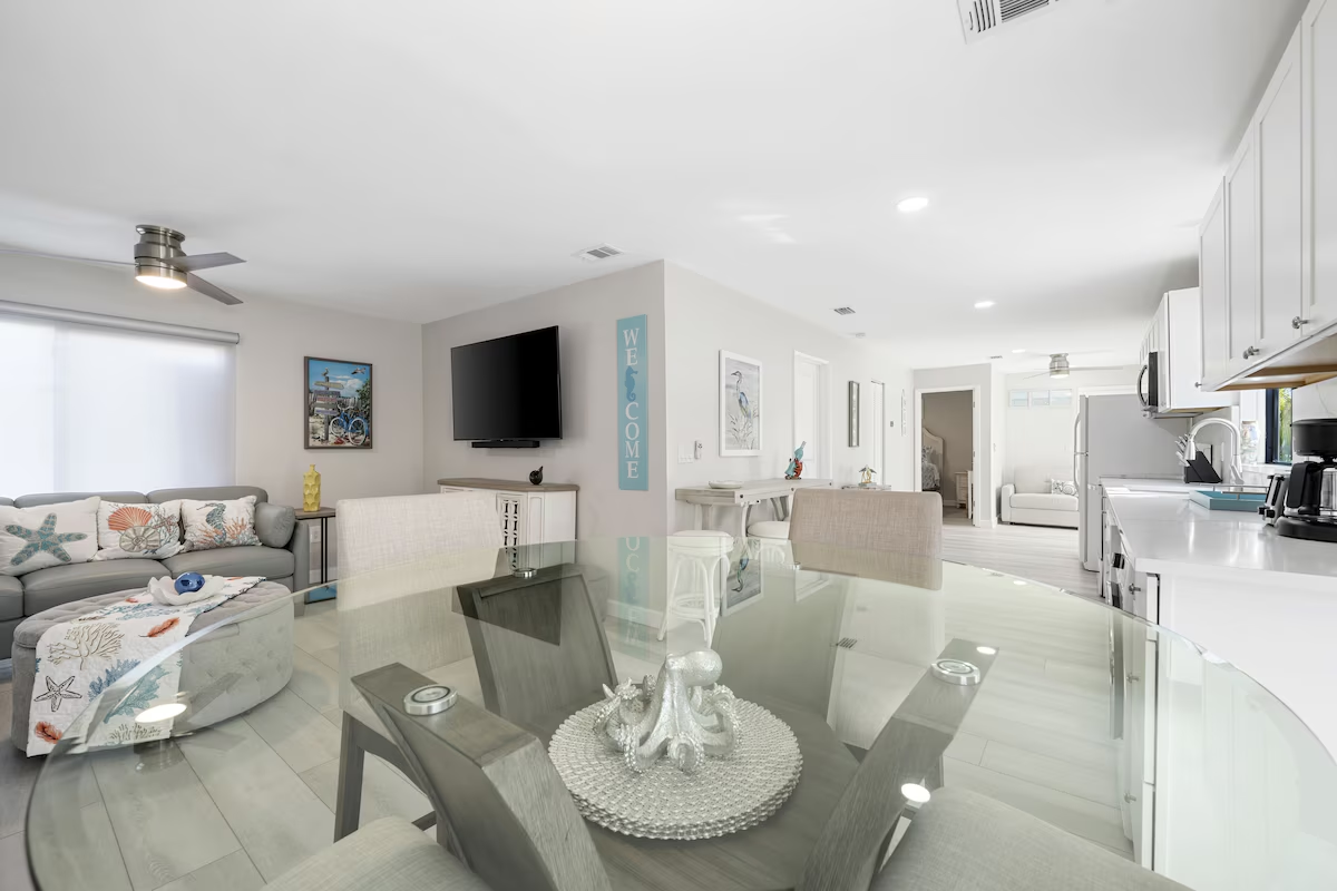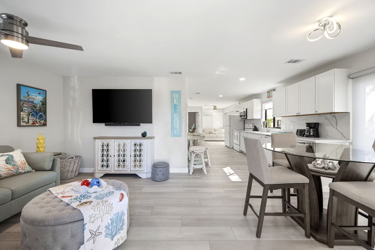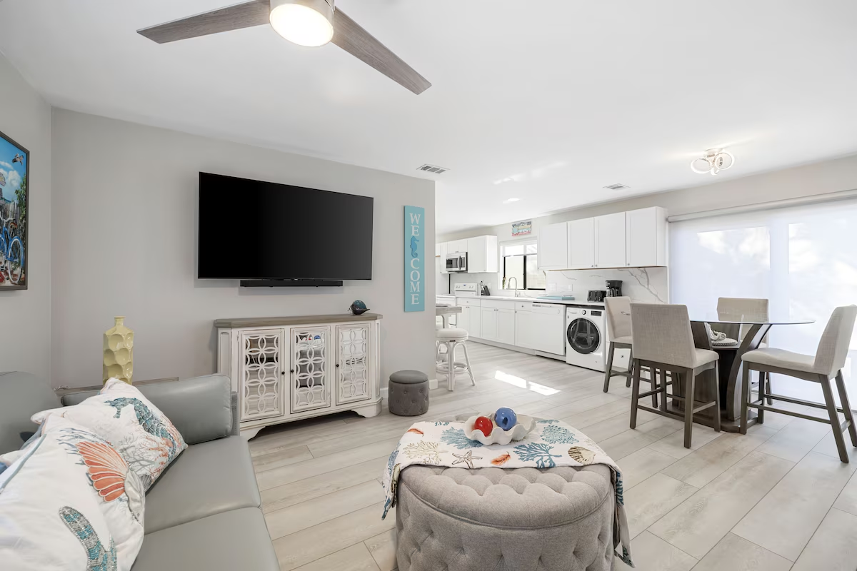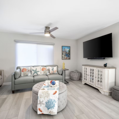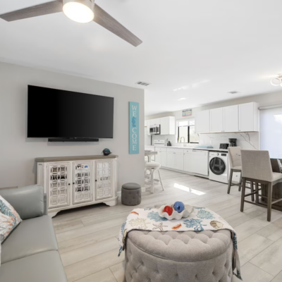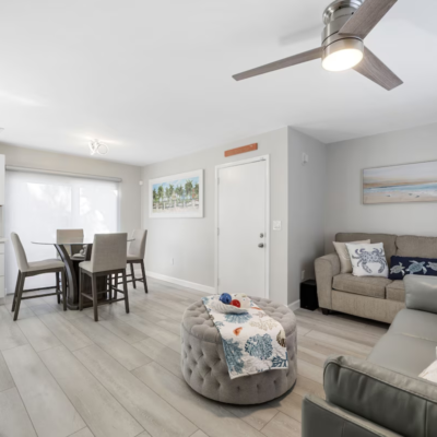 Escape to this beautifully renovated 2-bedroom condo in Englewood Florida. The condo comfortably sleeps up to 9 guests. Ideal for families, friends, or couples, it offers easy boat docking in the back bay and a short stroll to your private retreat. Enjoy stunning Gulf of Mexico sunsets while relaxing with a glass of wine. Located in peaceful Englewood, FL, you’re minutes from local bars, restaurants, and shops. Perfect for both adventure and relaxation, this getaway has it all!
